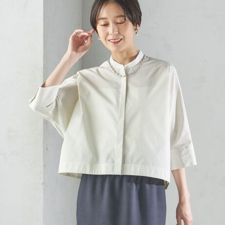 リラックス感のあるシルエットながら、コットンのハリ感がきちんとした印象を演出します。