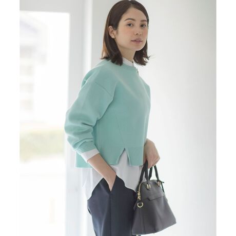 一枚でもレイヤードでも!着心地の良いスウェットライクなニットプル