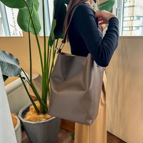 肩掛けしたときに身体にフィットするシルエットが魅力。