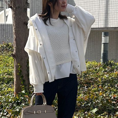 柔らかい素材感と袖の切り変えが特徴のデザインブルゾン。