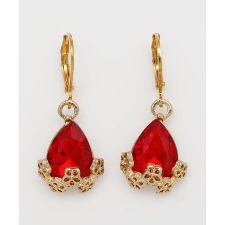 [型番:LECZ5119-2025]まるで宝石のように美しい、チェコガラスビーズでつくられたドロップ型のフックピアス。お花をかたどった繊細な装飾がポイントです。