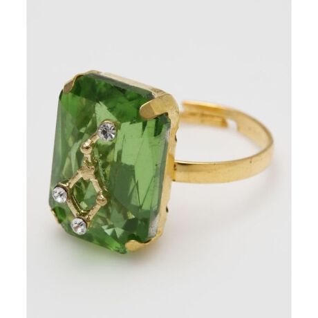 12星座をイメージしたカラーのチェコガラスでつくられたリング。星々にあしらわれたガラズビーズが、さりげなく煌めきます。サイズ調節可能です。