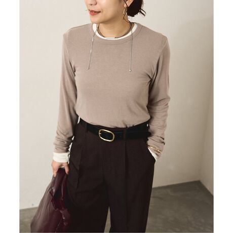 薄手ですが体のラインを拾いにくく、温かみもあるので1枚着としても活躍し、もちろんニットのインナーとしても便利です。ややつまり気味のネックまわりで袖丈を長めにしたバランスで着映えします。