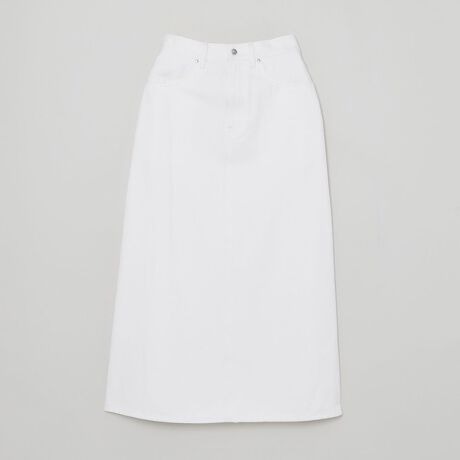 デニムシリーズにロングスカートが仲間入り。ウエスト周りはすっきりとしたデザインで、裾にかけてボリュームを出したややAラインのシルエットです。