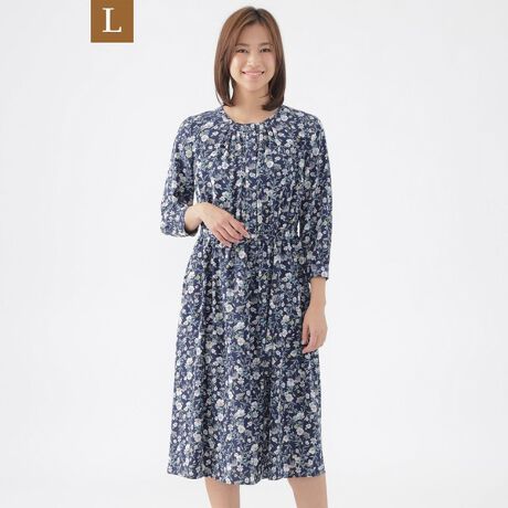 【L】【ウォッシャブル】ラインフラワープリントワンピース