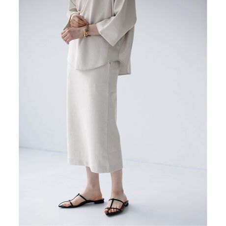 同素材のトップスとセットアップ着こなすワンピース風スタイル等、色々なスタイリングが楽しる万能アイテムです。