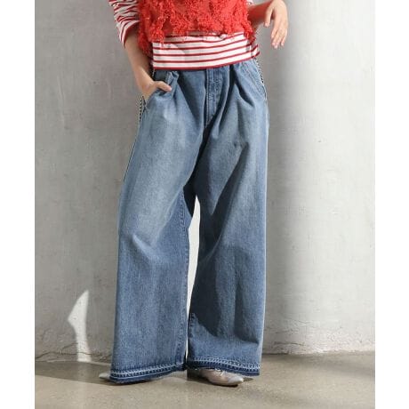 タックワイドデニムパンツ