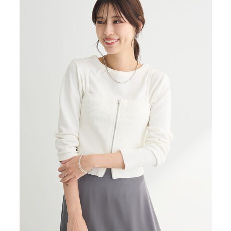 プルオーバーとキャミソールビスチェがセットになったアイテム。シンプルなプルオーバーにダブルジップ仕様のビスチェを合わせるだけでトレンドコーディネートが完成します。セットではもちろん、それぞれ単品で着用できるのも嬉しいポイント。春の雰囲気漂う薄手ニットは、デイリー使いに最適なおすすめのアイテムです。透け感[なし]