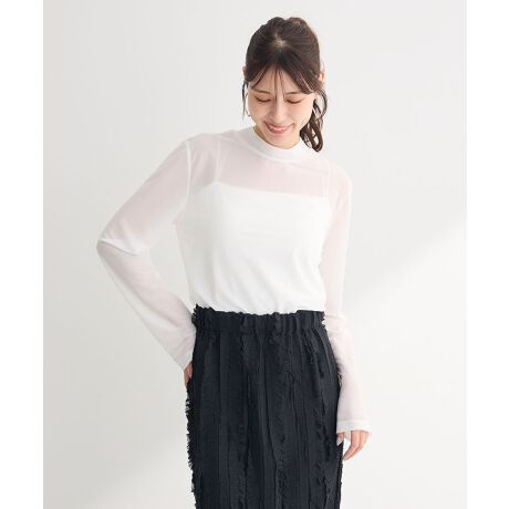 程よいシアー感が上品で女性らしいカットプルオーバー。1枚ではもちろん、インナーとしても活躍してくれる汎用性の高い1枚です。フィット感のあるタイトなシルエットにハイネックデザインがすっきりとした印象に。キャミソールと合わせたレイヤードスタイルからオーバーシャツのインなど様々なスタイルで楽しんでいただけます。透け感[あり]