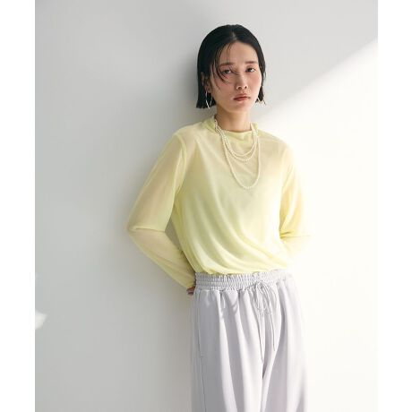 程よいシアー感が上品で女性らしいカットプルオーバー。1枚ではもちろん、インナーとしても活躍してくれる汎用性の高い1枚です。フィット感のあるタイトなシルエットにハイネックデザインがすっきりとした印象に。キャミソールと合わせたレイヤードスタイルからオーバーシャツのインなど様々なスタイルで楽しんでいただけます。透け感[あり]