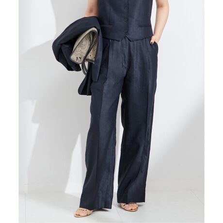 【ネイビー】表地:レーヨン50% リネン47% ポリウレタン3%