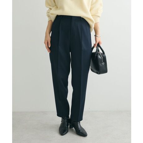 オン・オフ問わず活躍してくれる汎用性抜群のテーパードパンツ。お洗濯してもよれにくいセンタープレスや縮みやシワが出来にくいイージーケア素材の嬉しい仕様です。360°きれいにフィットするウエストは内側シークレットゴムですっきりと演出。ワンタック入りのリラクシーな穿き心地とベーシックなカラーでシチュエーションを選ばず合わせていただけます。透け感[なし]
