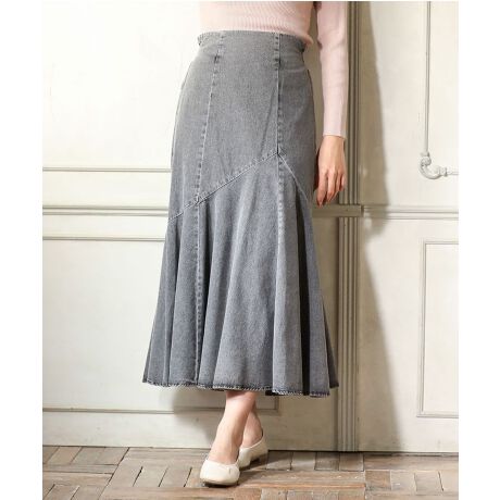 アシンメトリーの切り替えラインが特徴的なデニムスカート。膝下から広がる女性らしいマーメイドラインで、ウエスト周りをすっきりさせたスタイリッシュな1枚です。柔らかなデニム生地で着用感も軽くウエスト後ろゴム仕様で穿き心地も快適。カジュアルにもきれいめにも合わせられ、シーズンレスに楽しめるおすすめなアイテムです。透け感[なし]