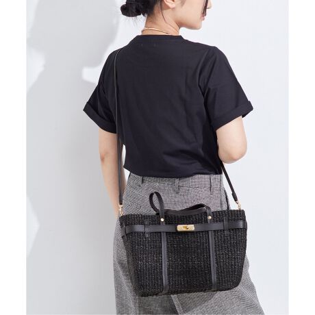 レザーハンドルとゴールドの金具が上品な印象のかごバッグ。