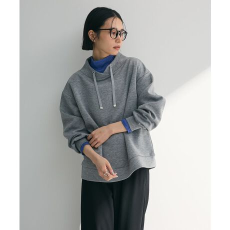 抜け感のある衿デザインがポイントのプルオーバー。しなやかでソフトな肌触りのダンボール素材で仕立てた軽やかな着心地が魅力です。カジュアルながらもコードエンドのメタルパーツ使いが上品なアクセントをプラス。スカートやスラックスなど合わせるボトムを選ばず、デイリーに着回し出来るおすすめのアイテムです。透け感[なし]