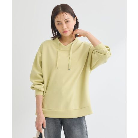 抜け感のある衿デザインがポイントのプルオーバー。しなやかでソフトな肌触りのダンボール素材で仕立てた軽やかな着心地が魅力です。カジュアルながらもコードエンドのメタルパーツ使いが上品なアクセントをプラス。スカートやスラックスなど合わせるボトムを選ばず、デイリーに着回し出来るおすすめのアイテムです。透け感[なし]