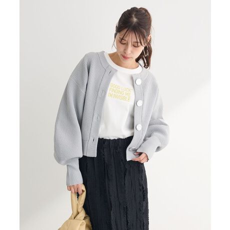 春のお出かけに取り入れたい畔編みニットカーディガン。コンパクトなシルエットにボリュームスリーブがバランスよく、トレンドライクな着こなしを後押しします。フロントのニュアンスの効いたボタンも目を惹くアクセント。大きめな編み目で通気性もよく、暖かな日中も過ごしやすい今季おすすめしたいアイテムです。透け感[なし]