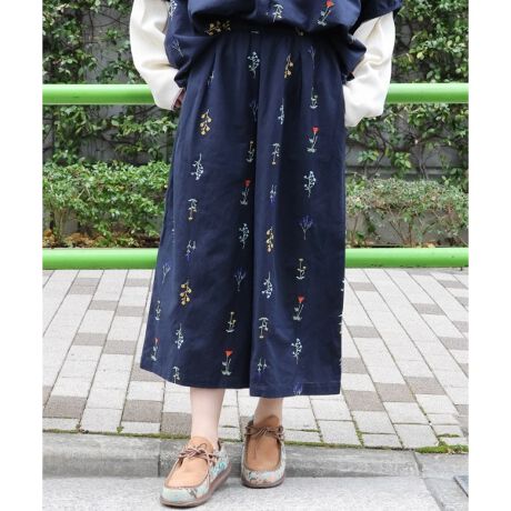 可愛らしい小花を散りばめた、女性らしい綿麻パンツ