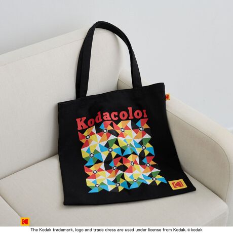 古き良き時代のフィルムカメラを想起させる、Kodak社のロゴをデザインしたトートバッグ。