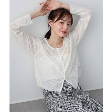 ほのかな透け感が清涼感あるベーシックシアーカーディガン。