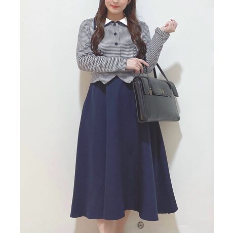 【洗える】レイヤード風 ギンガム フィット & フレアー ワンピース