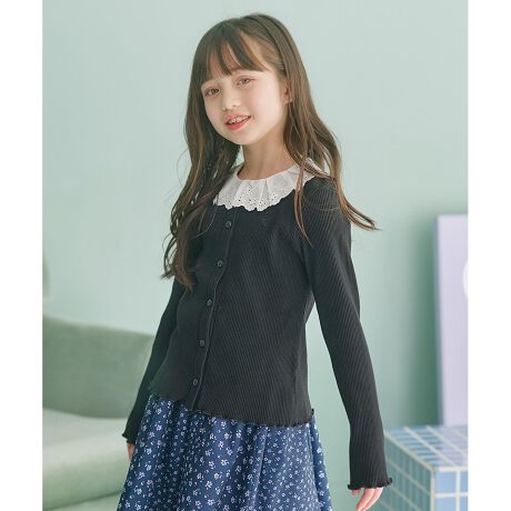 ■ポイント本体のリブ素材は伸縮性があり着心地抜群です。ボタンは組曲 KIDSオリジナルロゴ入りボタンを使用しています。前を閉めてトップスとしても、前を開けてレイヤードスタイルでもご着用いただける万能アイテムです。