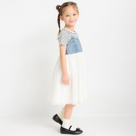 ・デニム部分の加工感にこだわった甘くなりすぎない切替ジャンパースカートです。