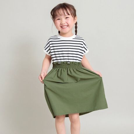 【WEB限定/DRC】ウエスト切替ドッキング半袖ワンピース