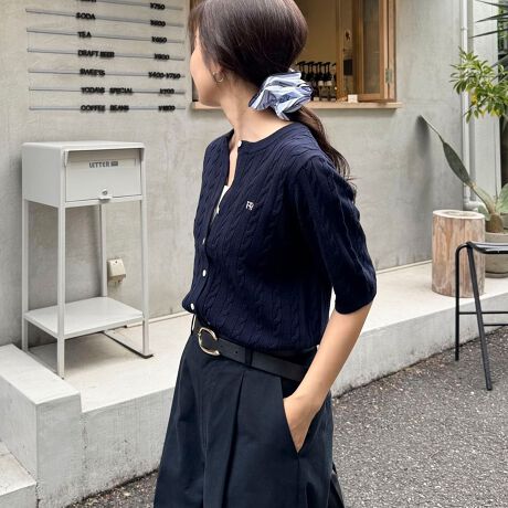 FR刺繍ケーブル柄半袖カーディガン