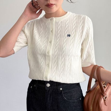 FR刺繍ケーブル柄半袖カーディガン