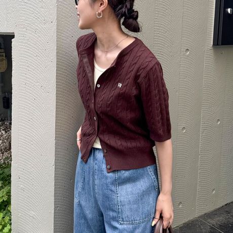 ・カラーバリエーション豊富なFR刺繍ケーブル柄半袖カーディガンです