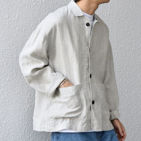 リネンらしいドライな質感はありながら、肌触りもソフトで快適な着心地の素材となっております。