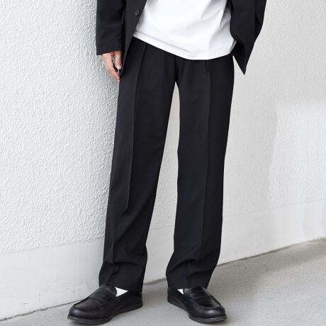 フロントにはステッチ入りクリースを施し、リラックスシルエットながらカジュアルになりすぎない、キレイめな印象に◎
