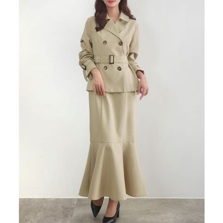 CENEA ショートトレンチコート+Vネックマーメイドジャンパースカート