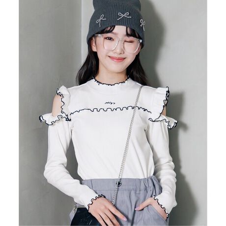 メロウフリル、肩あきデザインがガーリーコーデのインナーに大活躍するアイテム◎