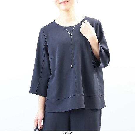 裾の切替えが女性らしい印象のシンプルで着回ししやすいアイテムです。