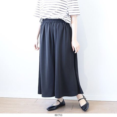 ウエストは穿き心地の良いゴム仕様ですが、落ち感がある素材なので分量があっても膨らみすぎず、気になる腰回りもすっきりと楽ちんな履き心地です。