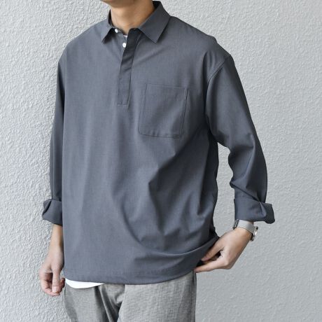 快適な機能素材を使った、スキッパーデザインのプルオーバーシャツ