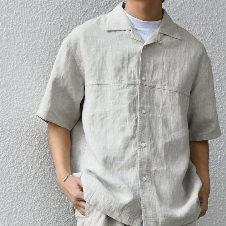セットアップスタイルも可能な、NOVELTEXの生地を使用した快適なリネンシャツ