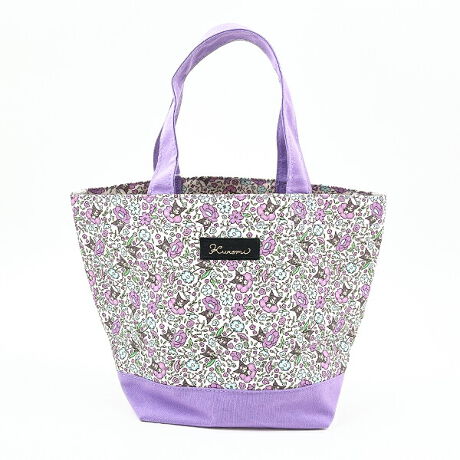 サンベリーナ柄とは親指姫をモチーフにした柄です。メルヘンな可愛さですが大人っぽい印象にまとめられていて使いやすいデザインです。ランチバッグやデイユーズに使いやすいサイズです。こちらはクロミちゃんデザインです。