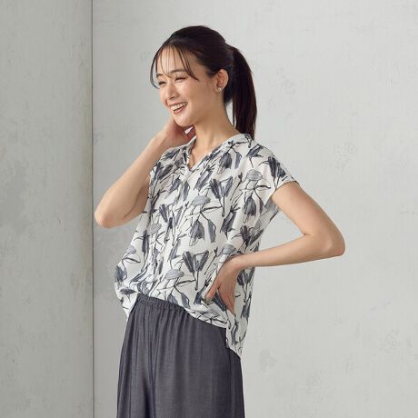 手書き調ぼかしの花柄をプリントとしました。