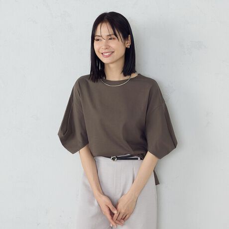 袖にタックを施したニュアンス感のあるデザインカットソー。