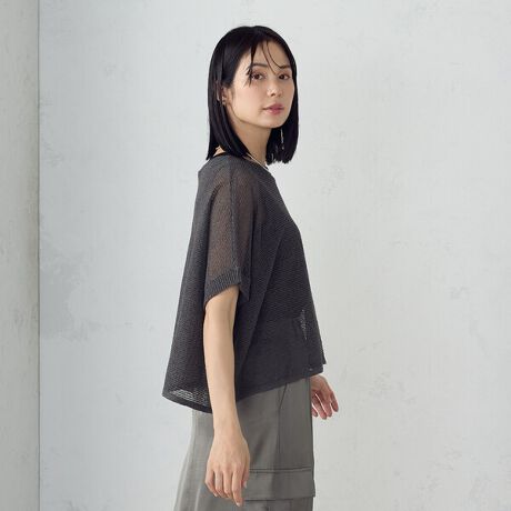 程よい透け感とヘルシーな肌見せが特徴のメッシュニットプルオーバーです。