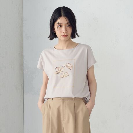 カジュアルすぎず上品な印象で着こなせる大人の女性にピッタリなTシャツです。