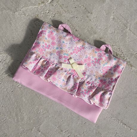 ・ガーリーな花柄プリントと、フリルやリボンが愛らしいデザイン。