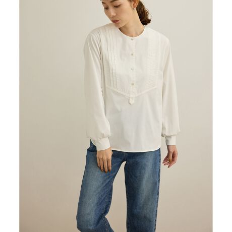 タックの入ったヨーク切り替えがドレスシャツのような上品な雰囲気に見せてくれるカットソーです。
