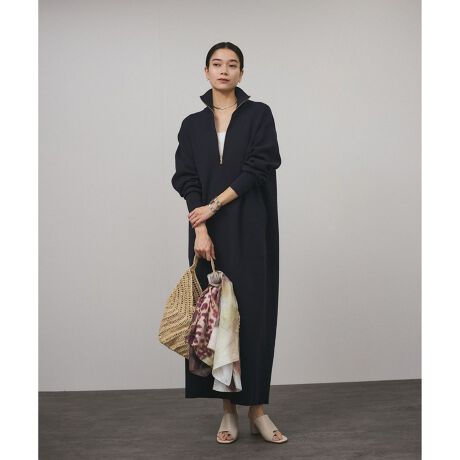 スタンドネックからスキッパーネックまで、顔まわりの印象を変えることができるハーフジップのワンピース。