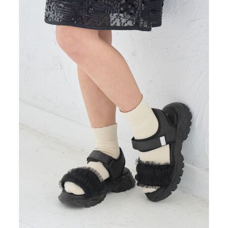 ・フロントにあしらわれたフリルが、甘さをプラスしつつも、厚底で大人っぽく仕上げています。