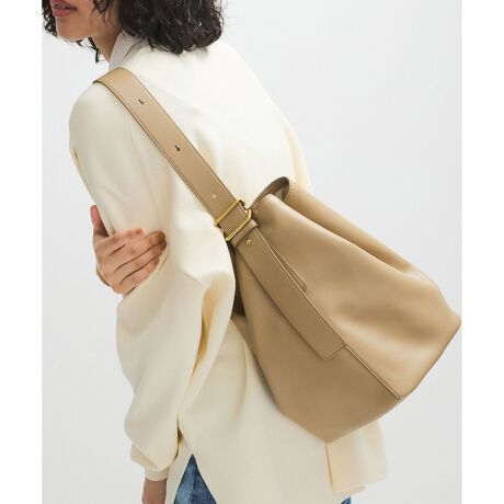 必要な荷物がキレイに収まるミドルサイズ。ショルダー横のギボシを外し、ショルダーを伸ばすと斜め掛けになるデザイン。