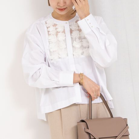 ・フロントのフラワーモチーフが可愛いブラウス